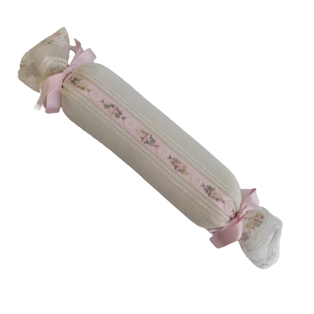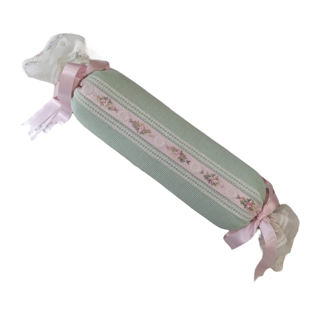 Stunning pillow roll in cream or green with the sweetest floral lace. Perfect match for your Aida Knitted sets.