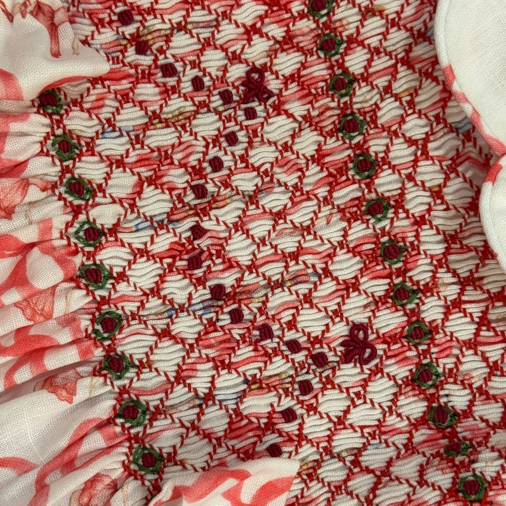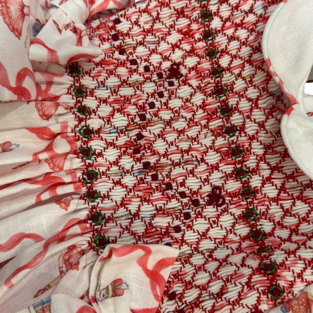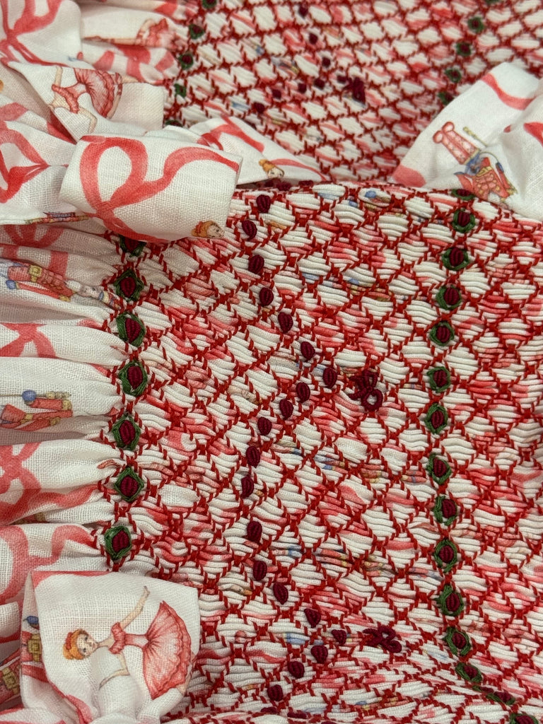 Nutcracker Red Bow Coquette Handsmocked Dress