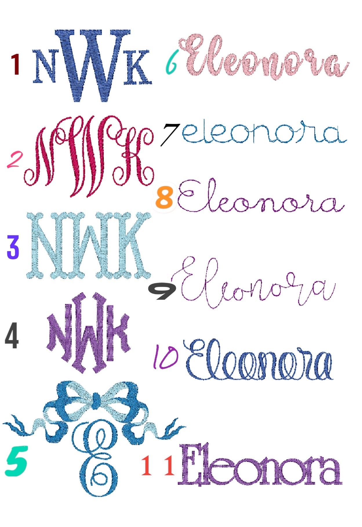 All embroidery is placed perpendicular to the bow. If you want it placed somewhere else let us know