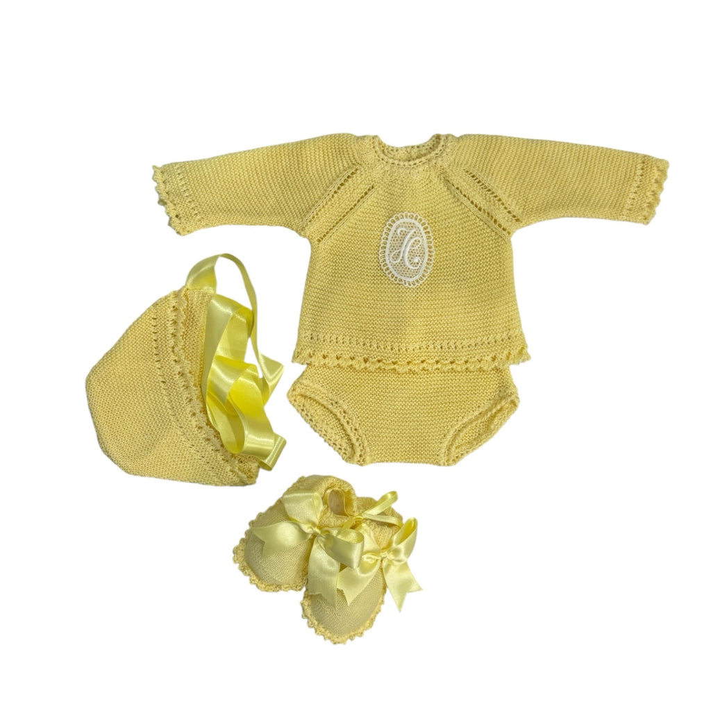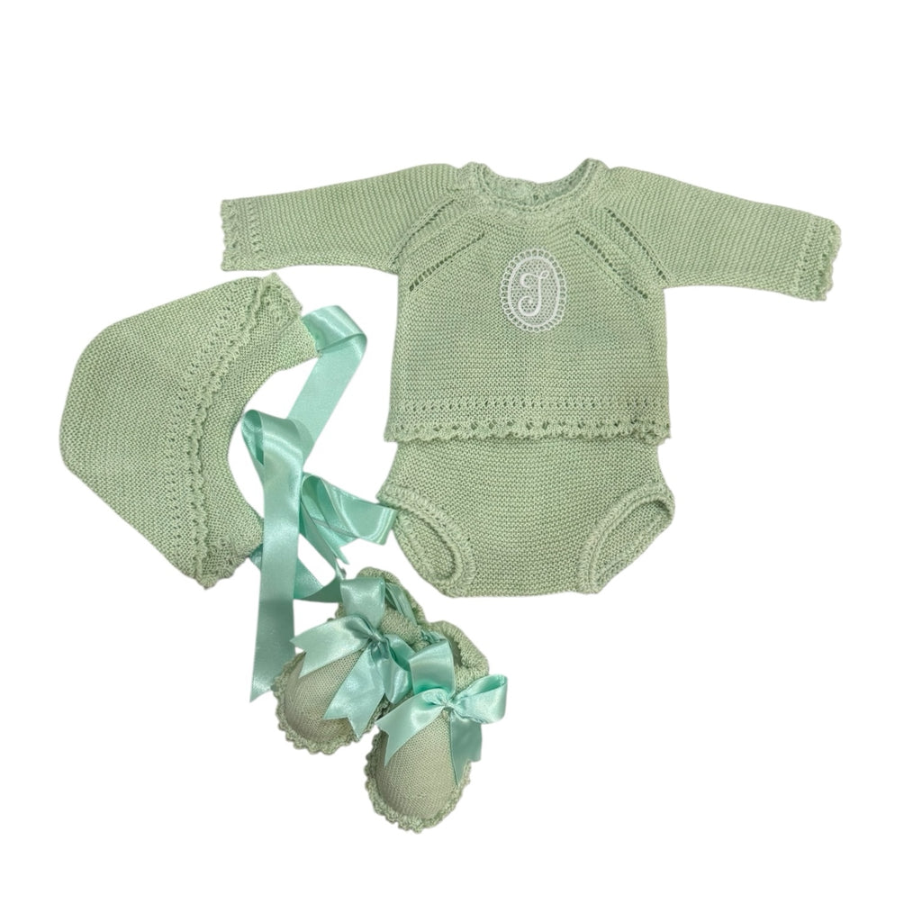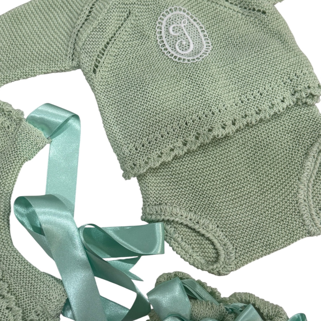 Stunning handmade knitted set for babies from which you can choose from 4 colors: