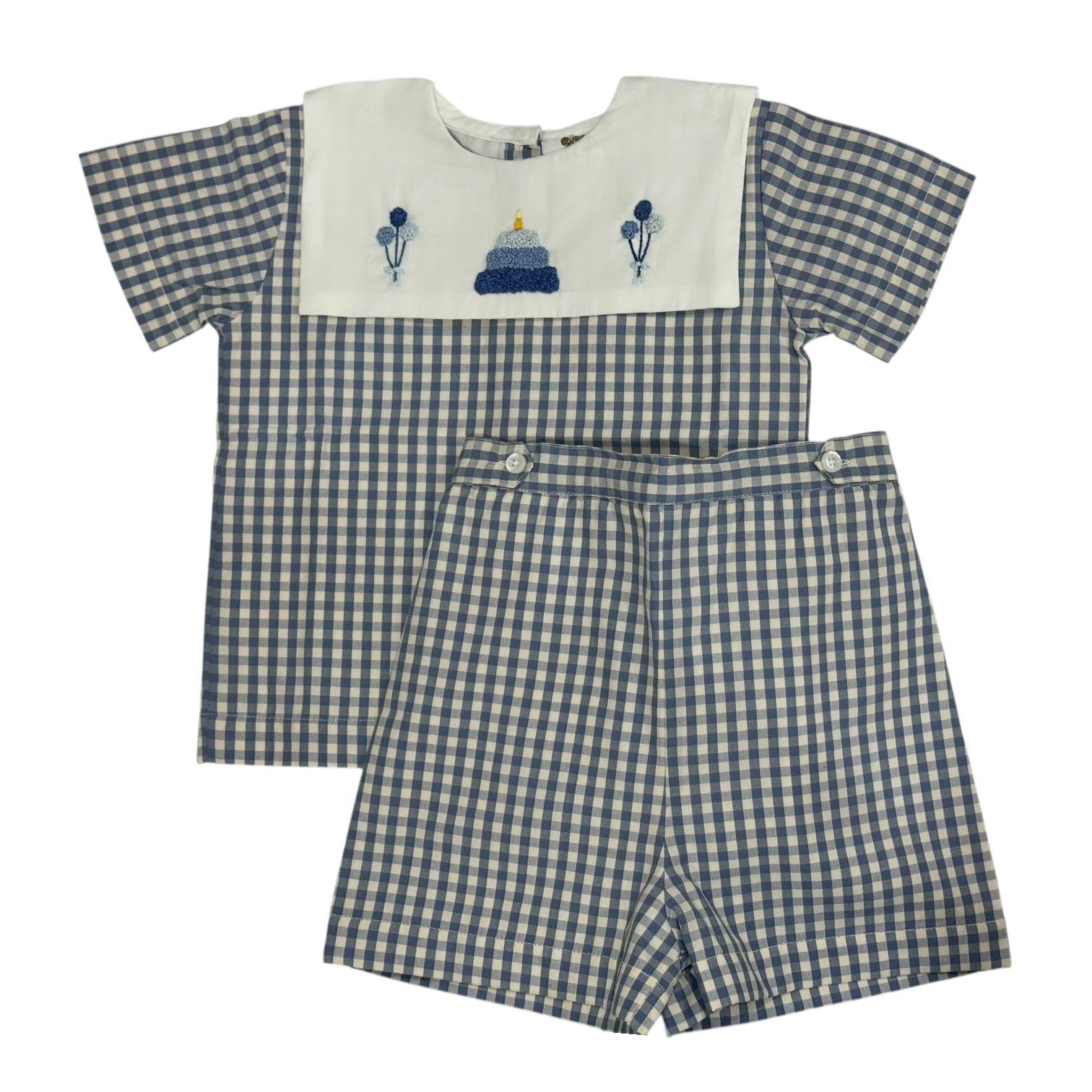 PREORDER Birthday Gingham French Knot Blue 2-Piece Set (SHIPS APRIL)