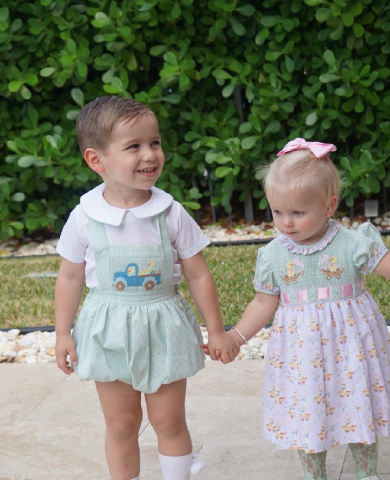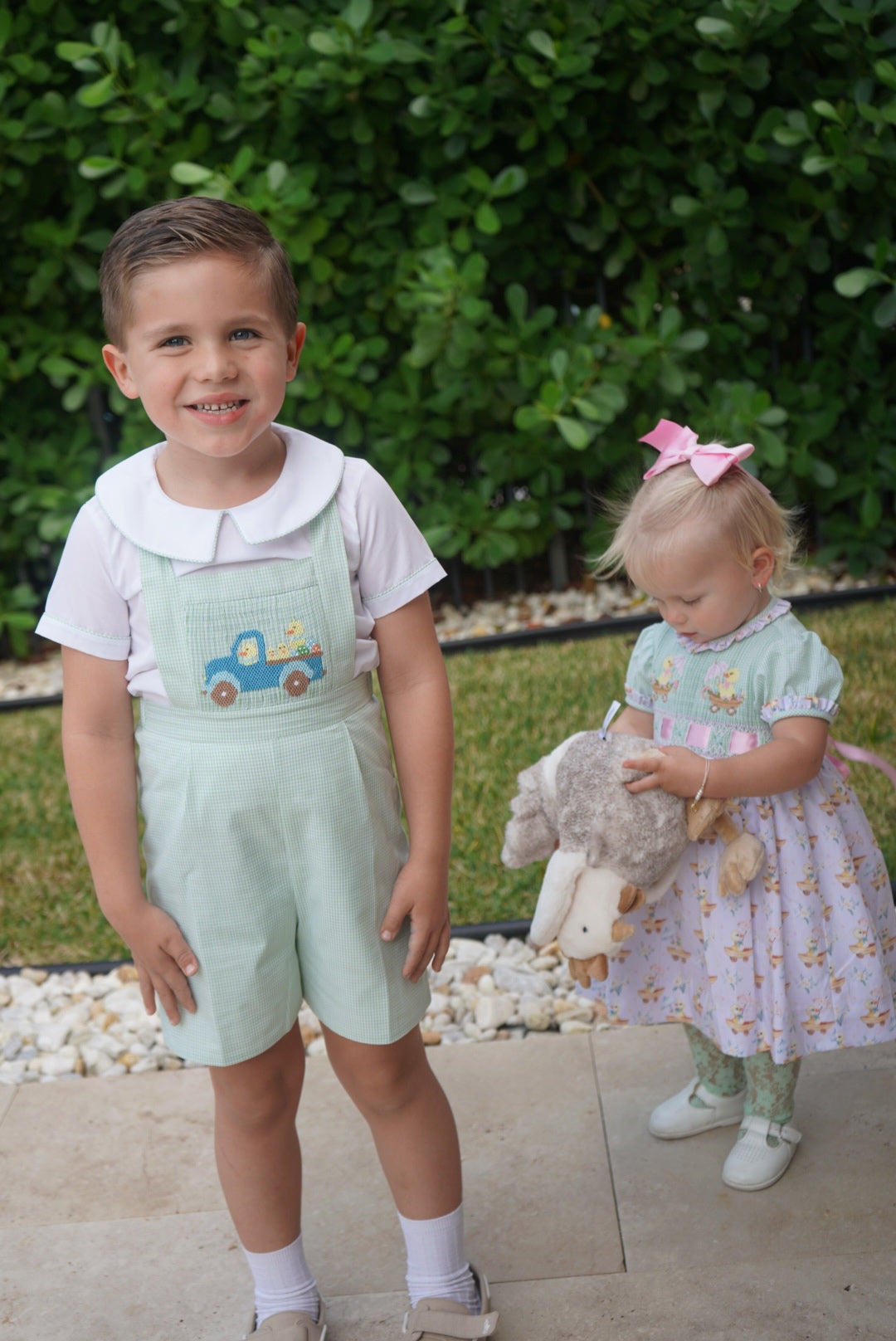 For sizes 4T and up, the set transitions to a regular (non-elasticated) silhouette while maintaining the same beautiful handsmocked detailing and coordinating design. Thoughtfully made for comfort, movement, and picture-perfect moments all season long.