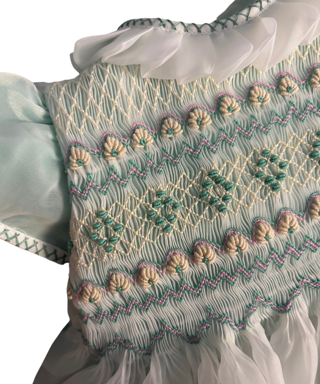 PREORDER Storybook Mermaid Aqua Handsmocked Organza Dress SHIPS MARCH