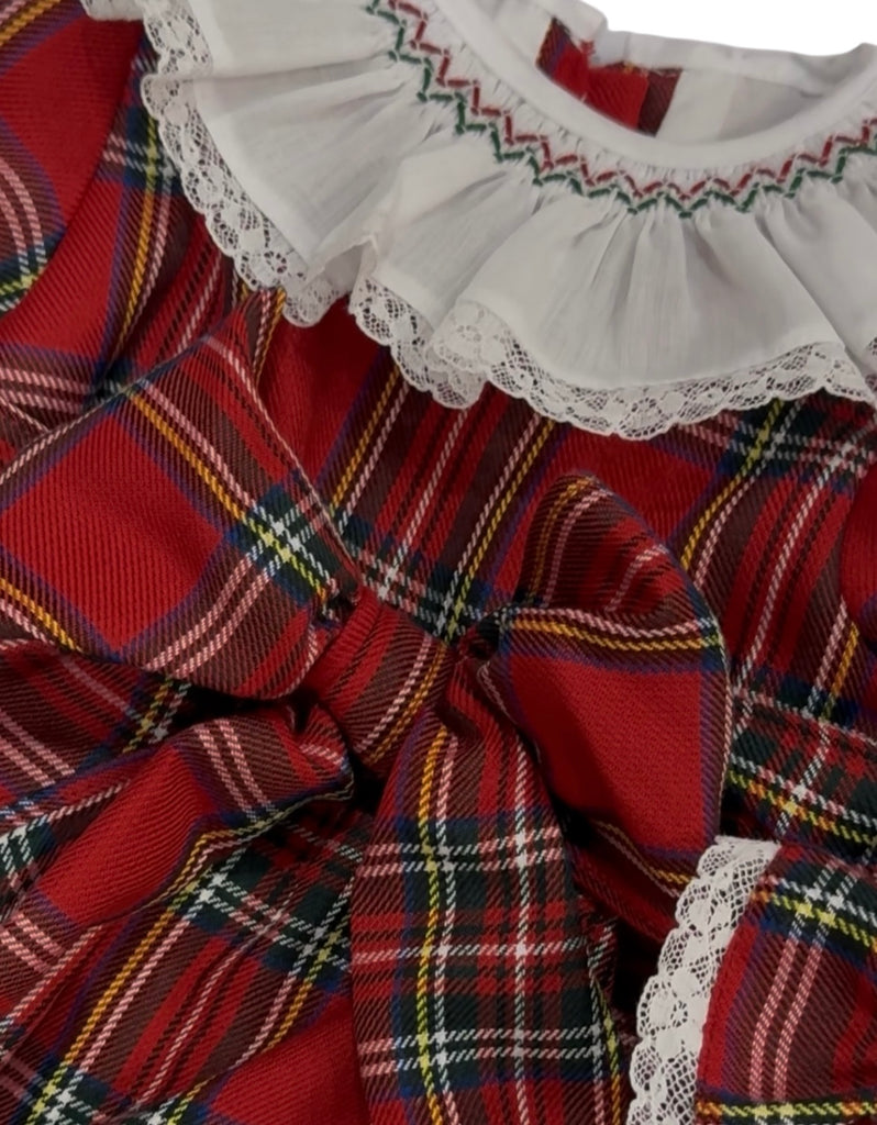 Gerarda Red Tartan Smocked Neckline Long Sleeves Bow Dress