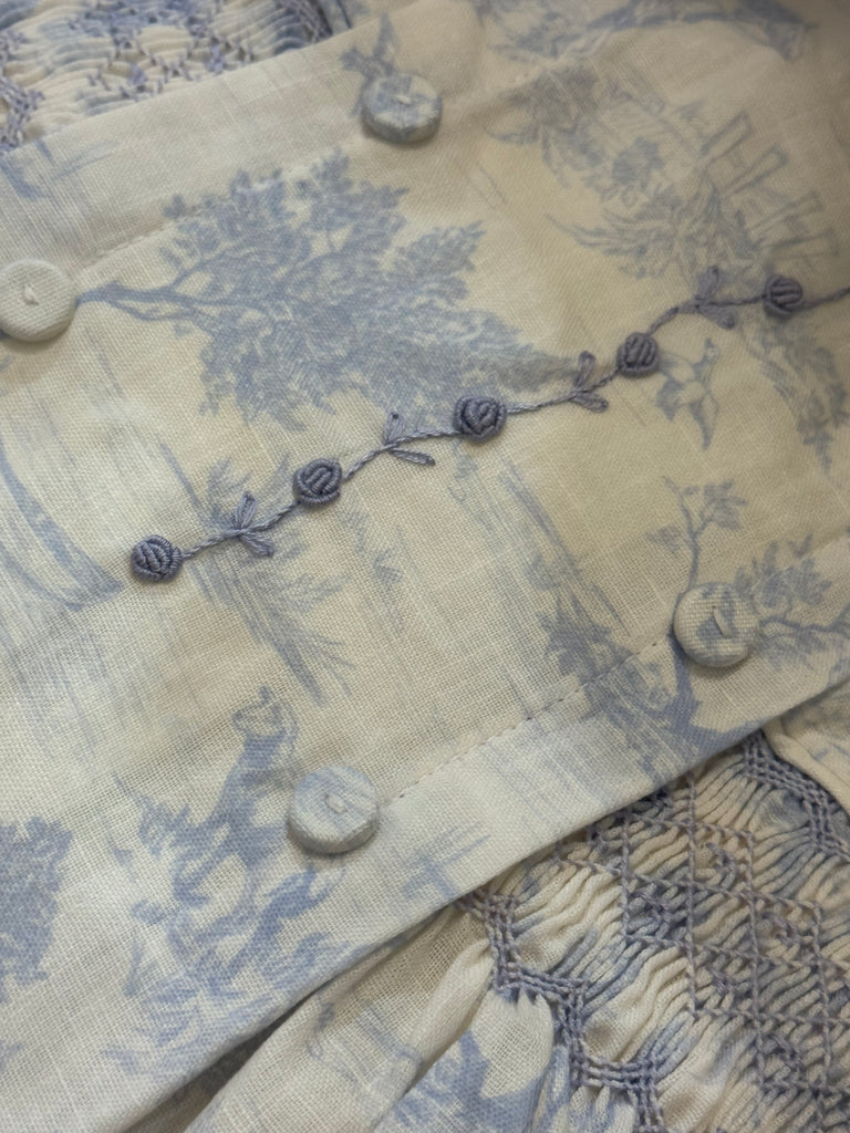 Arabella Toile de Jouy Light Blue Handsmocked Dress