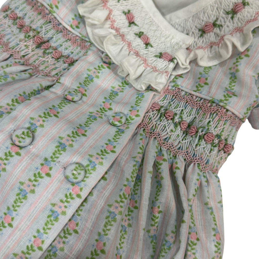 Gina Vertical Garden Pink Handsmocked Romper