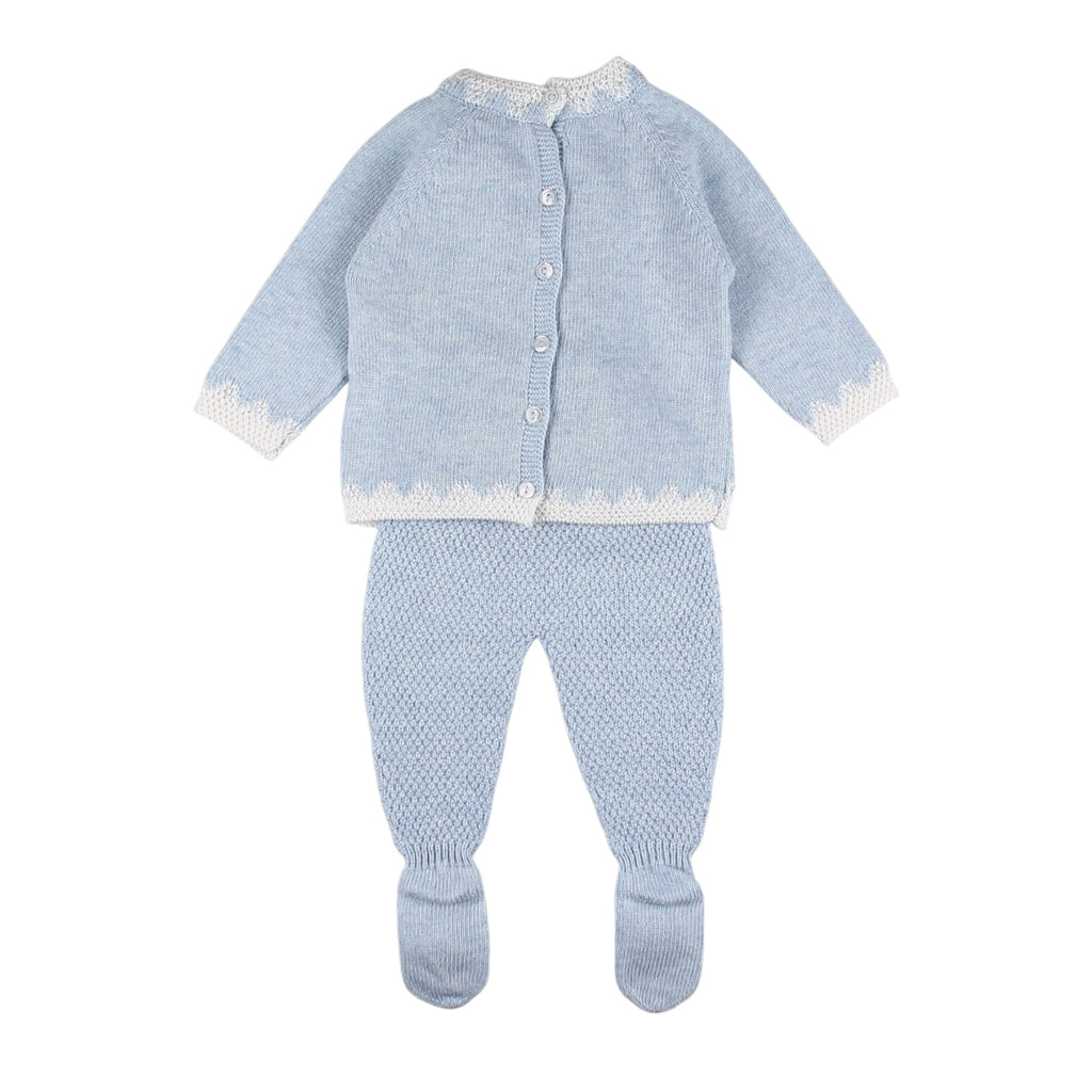 This super cute set for boys consists on a knitted top with a circus motif and pants in a light blue color