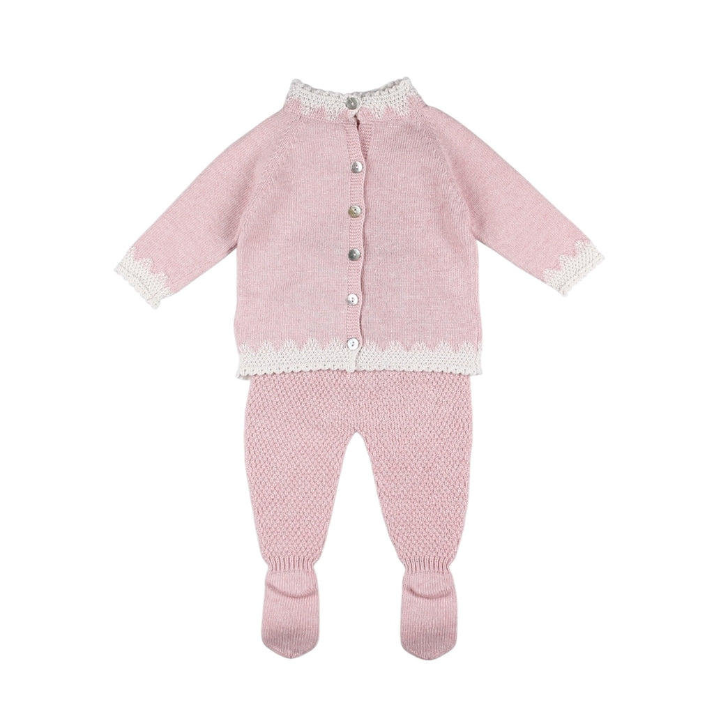 This super cute set for girls consists on a knitted top with a circus motif and pants in a light pink color