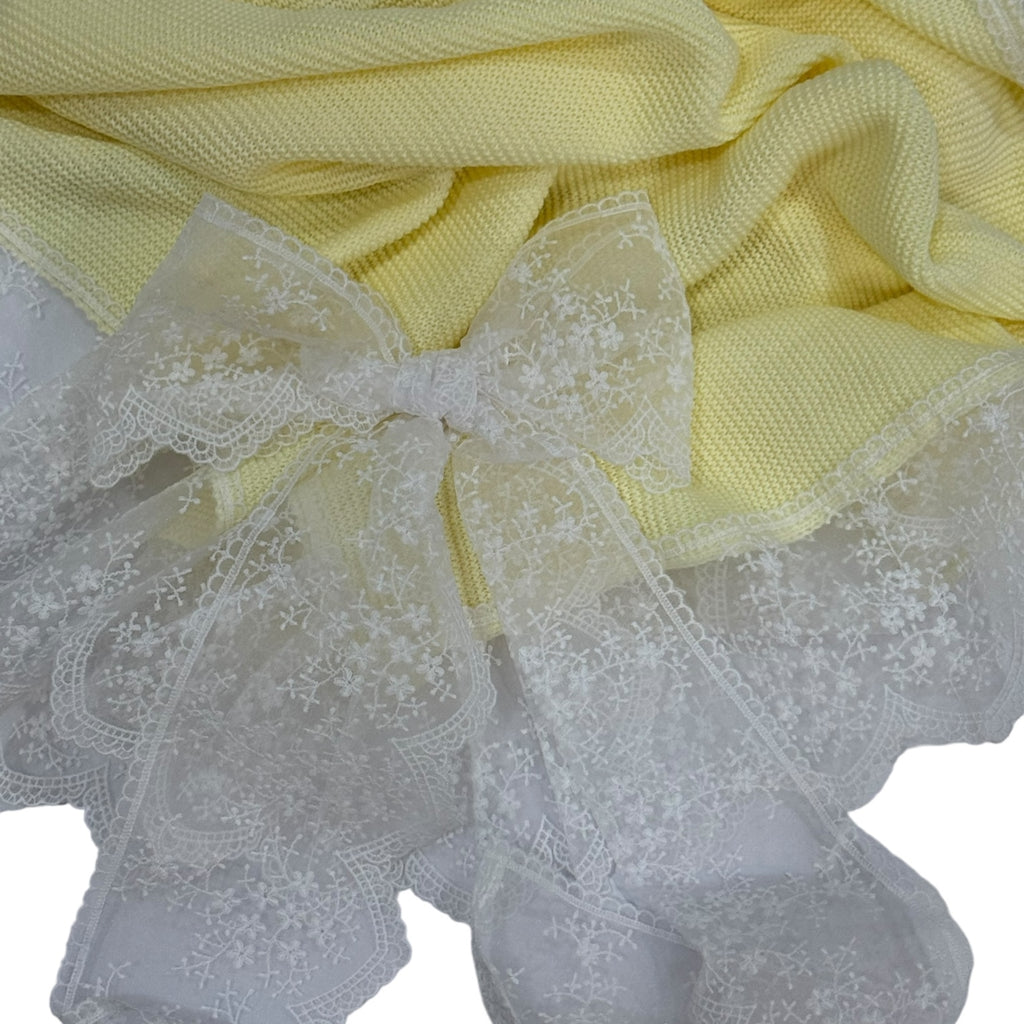 Gloria Yellow Lace Bow Luxe Knitted Blanket